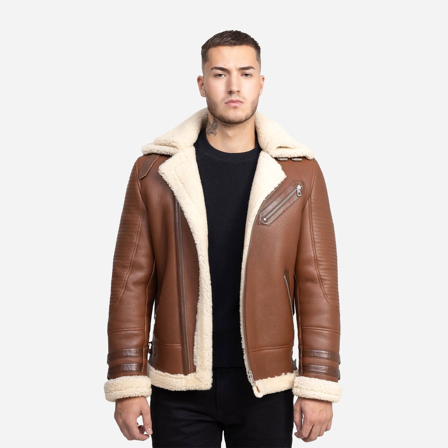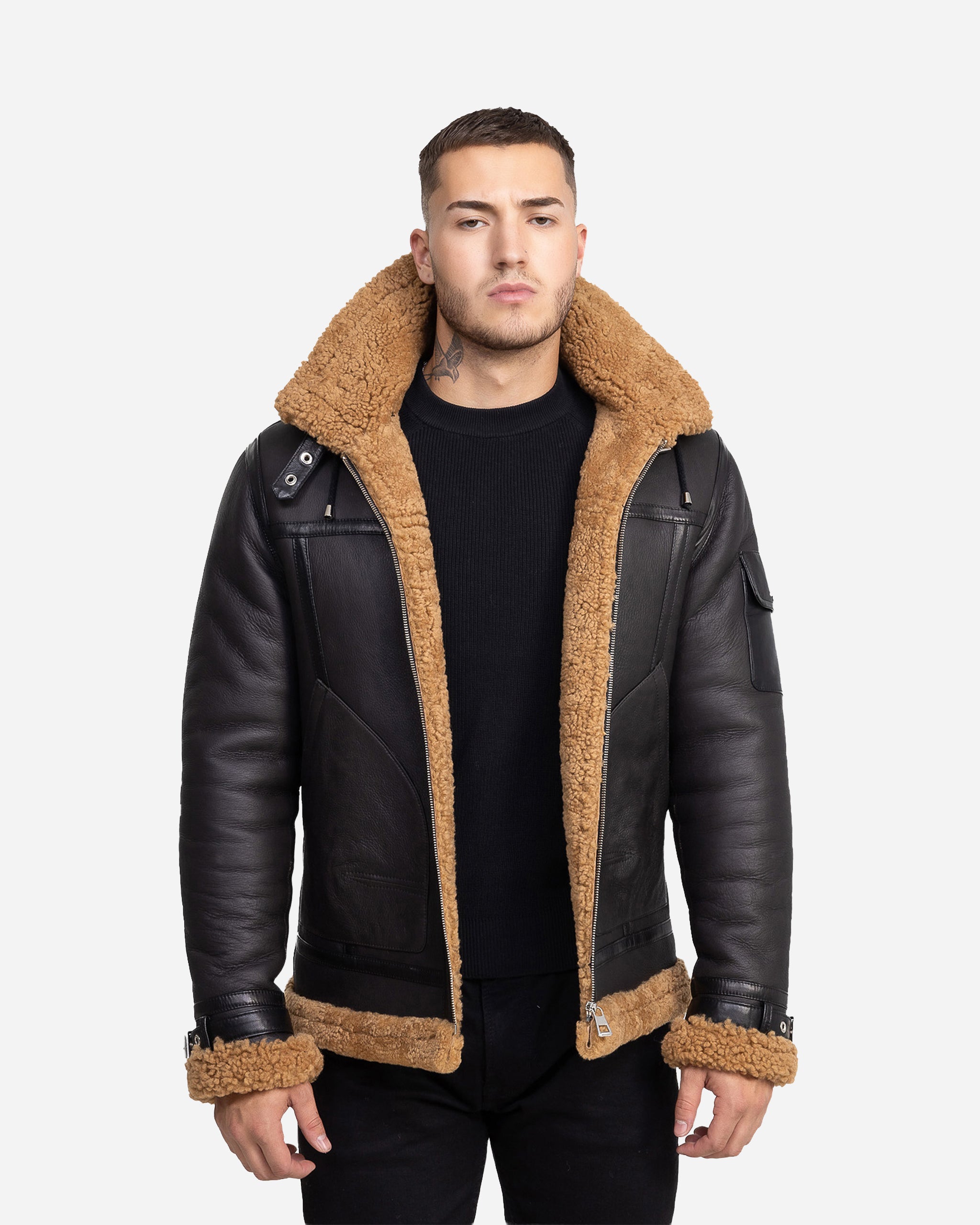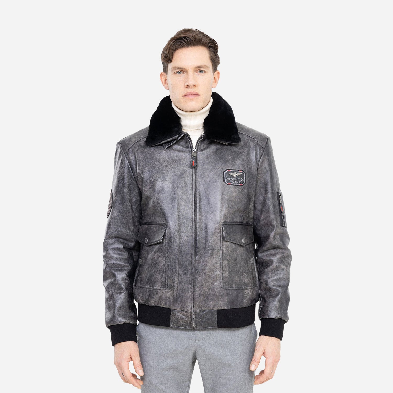 Victor Men's Winter Jacket Leather Sleeves With Silver Fox