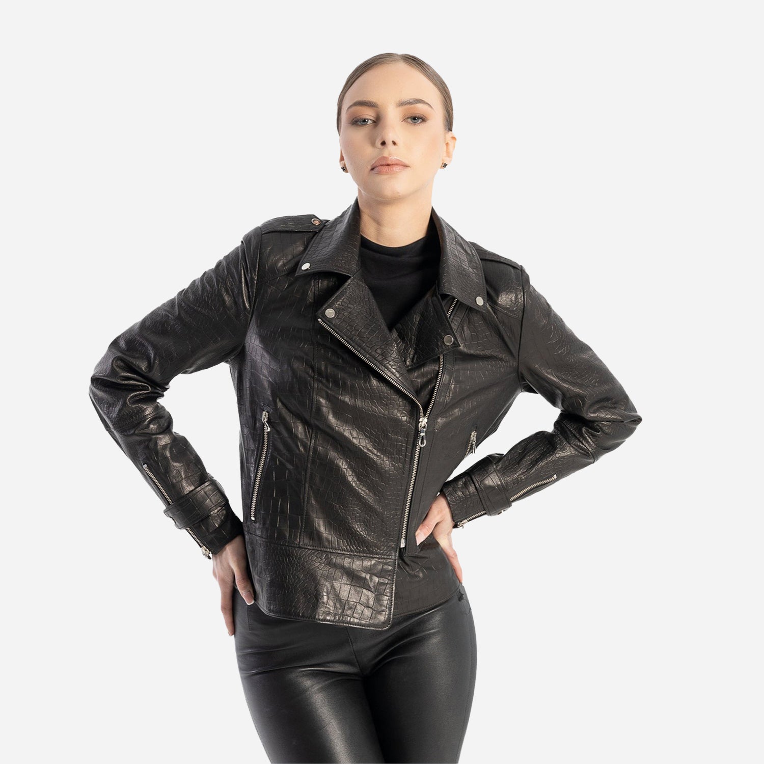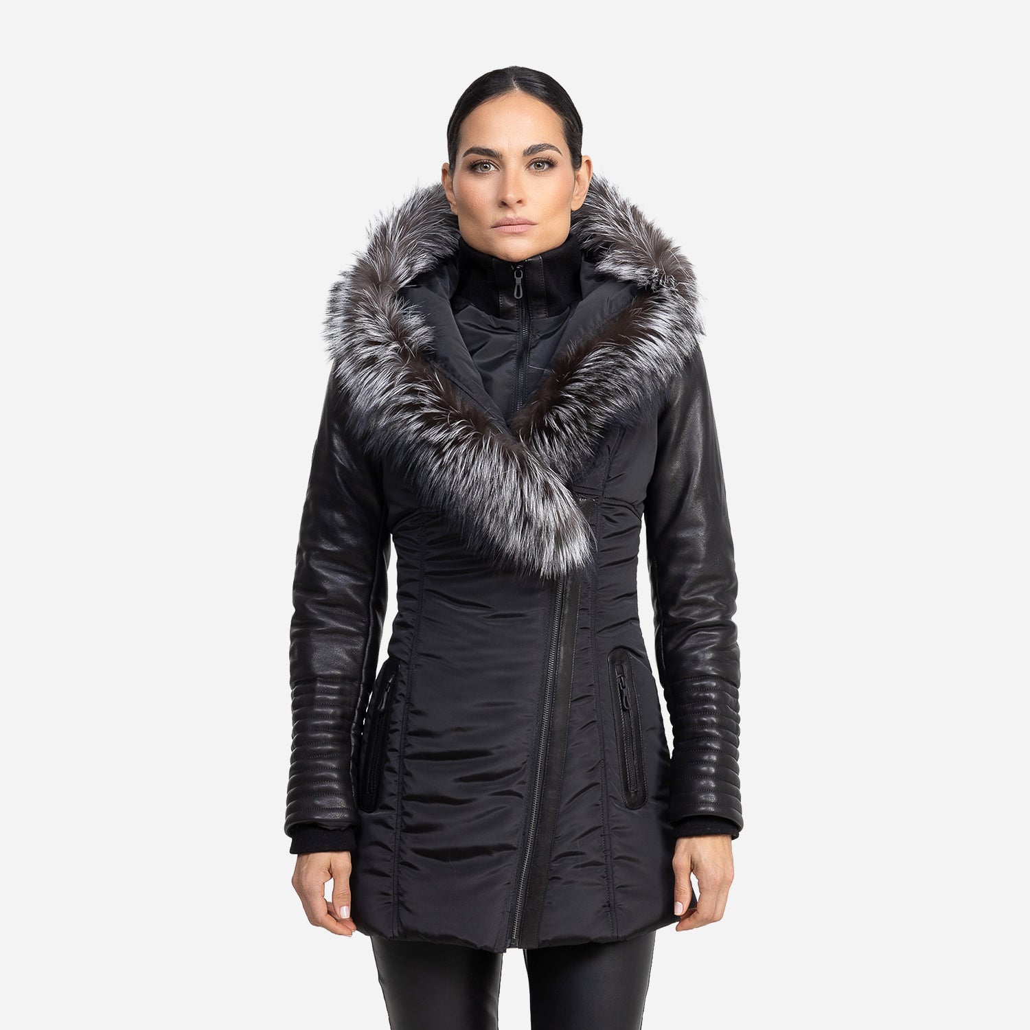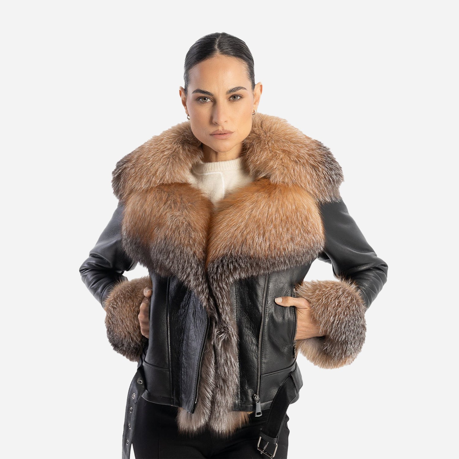 Kim Leather Sleeve Jacket with Silver Fox Fur