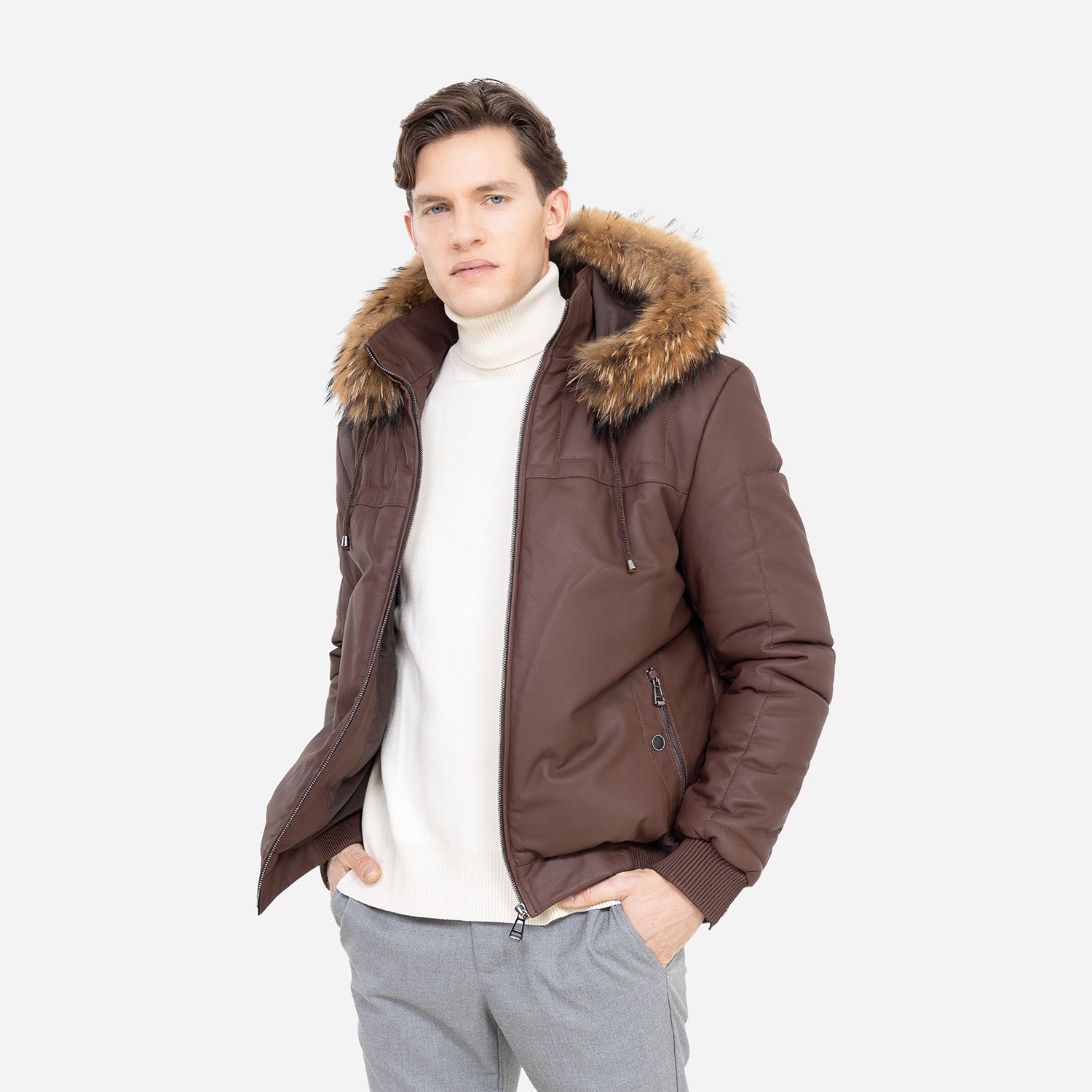 Arctic Men’s Winter Leather Coat With Natural Fur